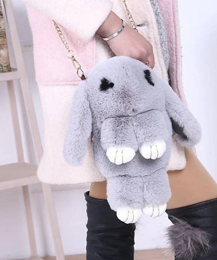 Cute Plush Rabbit Bag With Chain, Bunny Rabbit Sling bag