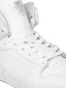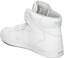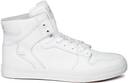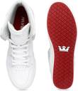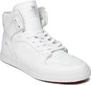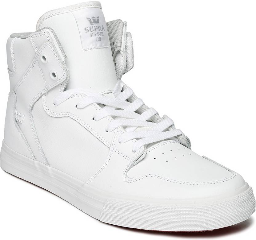 A pair of white casual shoes with central lace-ups and high-top styling. Leather upper, has perforated detail, padding along the mouth. Cushioned footbed. Textured outsole with grooves. Warranty: 3 months against manufacturing defectsThis pair of casual shoes from Supra is bound to give you a sharp and sophisticated look. Enhance your style statement by teaming it with distressed jeans and a tee.. .