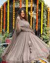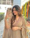 Supreetha Brand By Shivalik Fashion Manufacturer Presents An Elegant Women’s Gown Crafted In Premium Georgette Fabric. Designed With A Stylish V-Neck And Graceful Flow, This Gown Offers A Flattering Silhouette With A Soft, Lightweight Drape. The Rich Chiku Color Adds Timeless Charm, Making It Perfect For Festive Occasions, Parties, And Special Gatherings. A Blend Of Comfort, Quality, And Contemporary Style For Effortless Elegance.