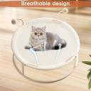 20CM HIGH OFF-FLOOR TRAMPOLINE BED FOR CAT: The cat bed features a 20cm high off-ground trampoline design, ensuring your cat stays elevated and away from cold, hard surfaces. This convenient off-floor design also promotes better airflow, keeping the bed clean, cool, and resistant to moisture or unwanted dirt accumulation.DURABLE METAL CONSTRUCTION: Constructed with a sturdy metal frame, this cat bed ensures long-lasting durability and stability. The robust construction keeps the bed securely in place, preventing wobbling while your cat lounges or plays, which is ideal for cats of all sizes.BREATHABLE MESH SURFACE FOR SUMMER RELIEF: The breathable mesh fabric of the bed provides a refreshing and cool surface during summer. This material is gentle on your cats skin, ensuring maximum comfort during hot days, while also being easy to clean and maintain for a healthy, happy pet.ROUND, SPACE-SAVING DESIGN: With a compact, round shape measuring 17.72 inches in diameter, this cat bed is designed to fit seamlessly into any corner of your home. Its minimalistic yet functional design caters to your pets relaxation needs without occupying too much living space.PLUSH TEASING BALL TOYS FOR ENTERTAINMENT: To keep your cat entertained and engaged, this bed includes soft, flexibly wired plush ball toys. These interactive toys encourage playful behavior and mental stimulation, making the bed not only a cozy resting spot but also a fun activity zone for your feline friend.