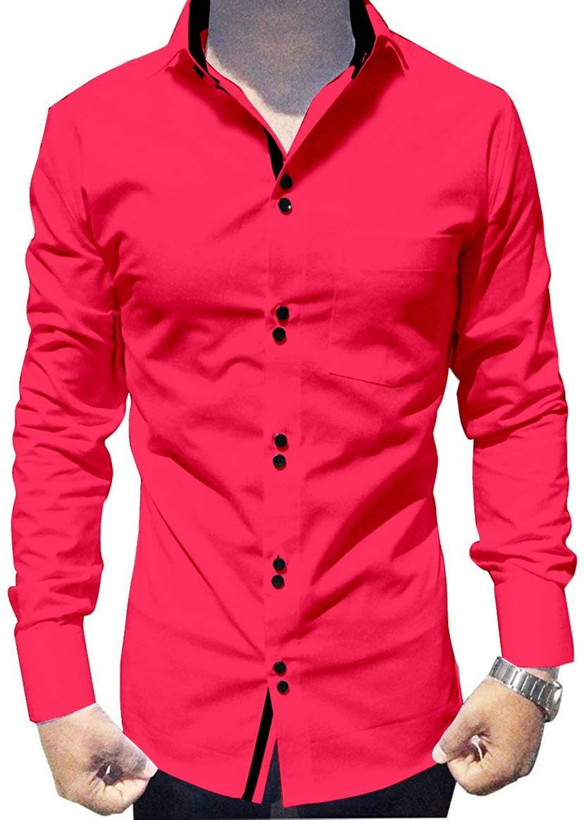Men Slim Fit Solid Spread Collar Casual Shirt