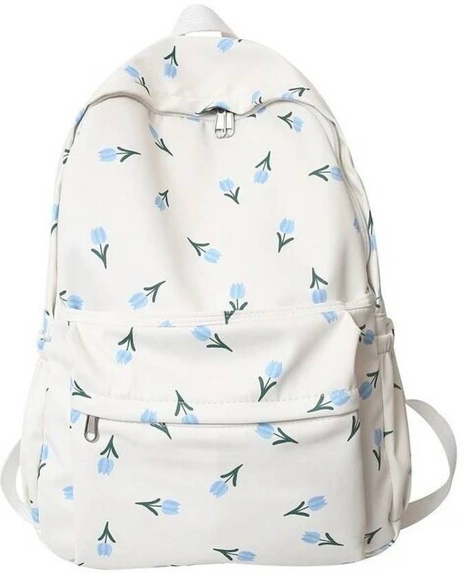 Surajnew Small 15 L Backpack Cute Premium Quality White Flower Pattern 3D Bag Latest Designer School Bagpack (White)