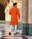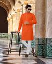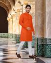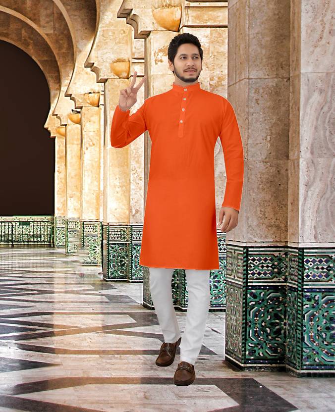 The style elements include a mandarin collar with a 4-button placket and full sleeves with turn-up detail. Further details include a chest pocket and an eye-catching all-over slub pattern on the body. Crafted in a light, premium breathable fabric that will easily enhance your comfort level. This is a 2-pieces set that includes a long button kurta and a drawstring pajama. Traditional design on this kurta captures all of the details of the classic Indian men's garment with long sleeves.4. Suitable for: Party, Weddings, Regular Wear, Celebrations, Occasions, Festivals, Lohri, Pongal, Makar Sakranti, Baisakhi, Holi, Eid, Raksha Bandhan, Dussehra, Diwali, Navratri, Pooja, Christmas, Onam, Ganesh Chaturthi, Janmasthmi and Gifts for Mens.