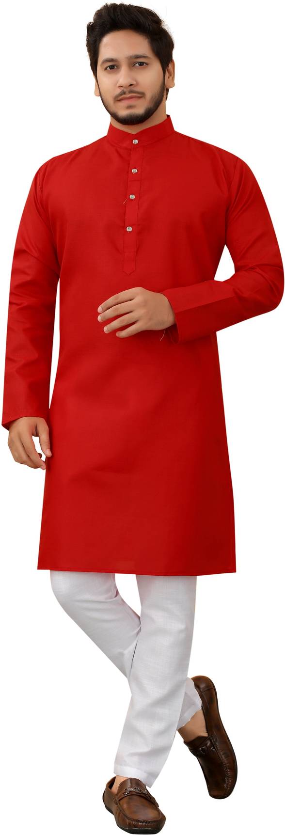 The style elements include a mandarin collar with a 4-button placket and full sleeves with turn-up detail. Further details include a chest pocket and an eye-catching all-over slub pattern on the body. Crafted in a light, premium breathable fabric that will easily enhance your comfort level. This is a 2-pieces set that includes a long button kurta and a drawstring pajama. Traditional design on this kurta captures all of the details of the classic Indian men's garment with long sleeves.4. Suitable for: Party, Weddings, Regular Wear, Celebrations, Occasions, Festivals, Lohri, Pongal, Makar Sakranti, Baisakhi, Holi, Eid, Raksha Bandhan, Dussehra, Diwali, Navratri, Pooja, Christmas, Onam, Ganesh Chaturthi, Janmasthmi and Gifts for Mens.