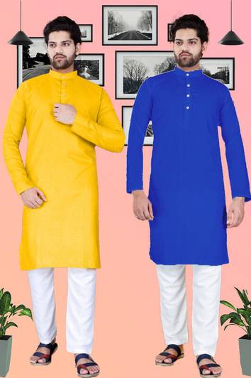 SURATILALA Pack of 2 Men Solid Cotton Blend Straight Kurta (Multicolor)