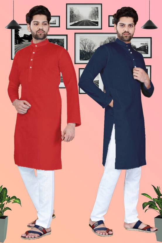 SURATILALA Pack of 2 Men Solid Cotton Blend Straight Kurta (Multicolor)