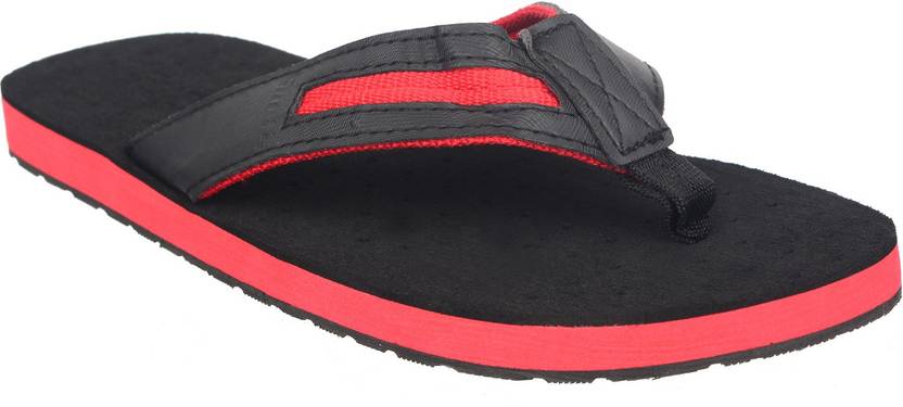 Men Flip Flops (Red, Black , 7)