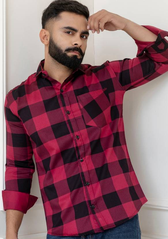 Surhi Men Checkered Casual Red Shirt