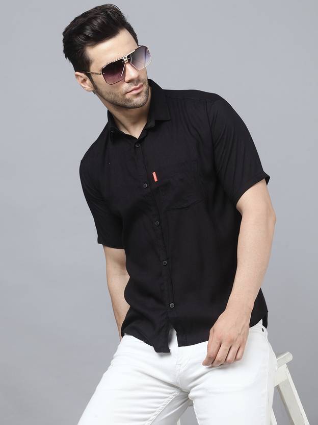 Surhi Men Solid Casual Black Shirt
