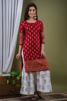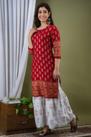 Adorned with intricate paisley patterns that can infuse your attire with a touch of sophistication, this women's kurta and shararas set can make you stand out in any gathering. These paisley patterns can not only add an elegant touch but also offer a unique aesthetic appeal that captures attention.
