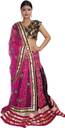Embroidered Semi Stitched Lehenga Choli (Black, Pink)