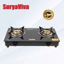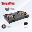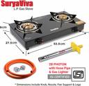 SURYAVIVA Photon 2B (Lighter+hose pipe) BK Toughened 2 Cast Iron (Igniton,Black) Glass Manual Gas Stove (2 Burners)