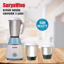 SURYAVIVA Ronin 500 W Mixer Grinder (Mixer Grinder Ronin 2 jar 500 watt | 2 Jars | Blue & White)