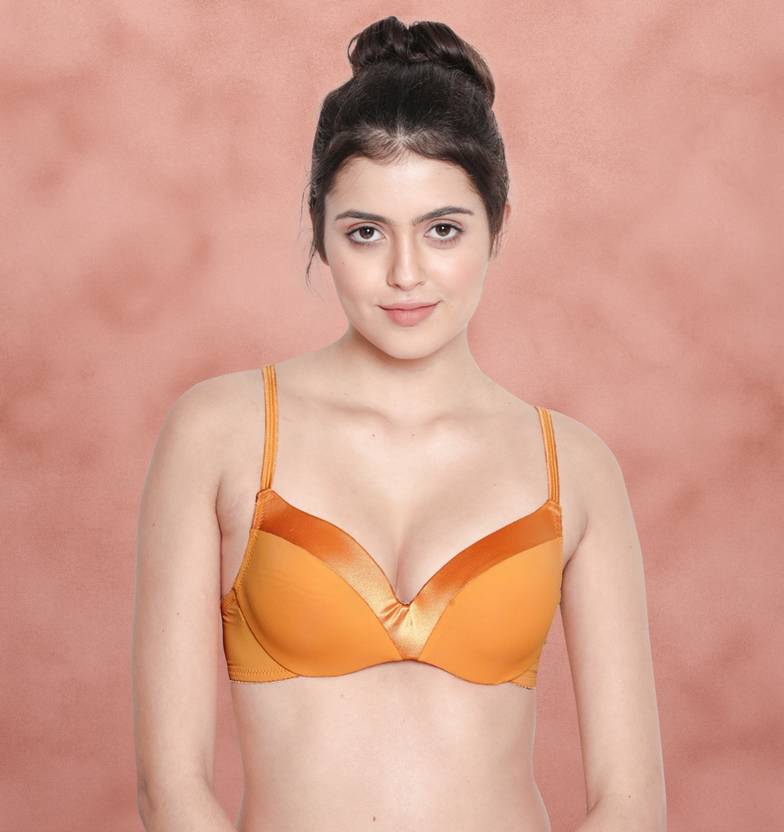 Susie Susie Satin Neckline Demi-Coverage Under wired Padded Plunge bra- Orange Women Balconette Lightly Padded Bra (Orange)