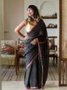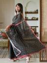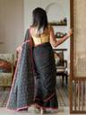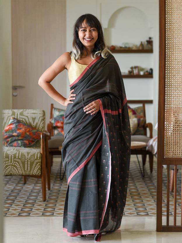 Suta Printed Handloom Pure Cotton Saree (Black)