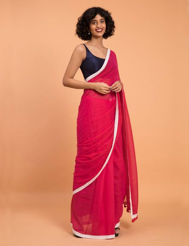 Solid/Plain Daily Wear Pure Cotton Saree (Pink)