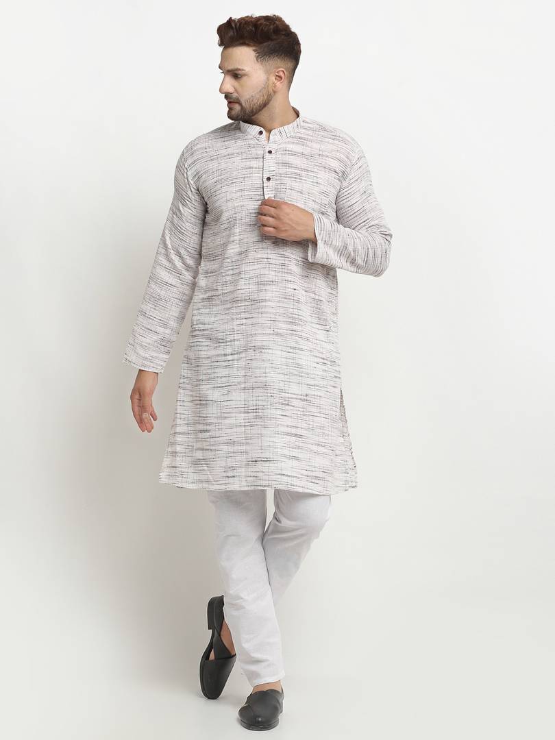 SUVASANA Men Printed Straight Kurta (Grey, Black)