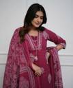 Elegant Printed, Emblished, Embroidered, Beautification on Neckline kurta set adorned with intricate paired with comfortable printed pants and a matching mulmul dupatta.