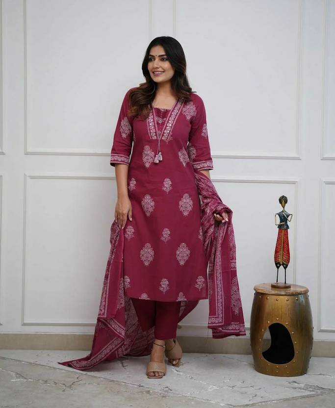 Elevate your ethnic wear collection with the exquisite Suyash Women Buti Printed Kurta Set, beautifully tailored from pure cotton for unmatched comfort and breathability. This stunning ensemble features intricate embroidery adorned with delicate mirror work, adding a touch of elegance to the classic buti print. The set includes a gracefully designed kurta that flows effortlessly, paired with stylish printed pants that allow for versatility and ease of movement. Completing the look is a lightweight mulmul dupatta, perfect for draping or styling as you desire, making it an ideal choice for festive occasions or casual outings.