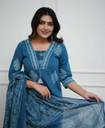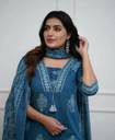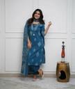 Elegant Printed, Emblished, Embroidered, Beautification on Neckline kurta set adorned with intricate paired with comfortable printed pants and a matching mulmul dupatta.