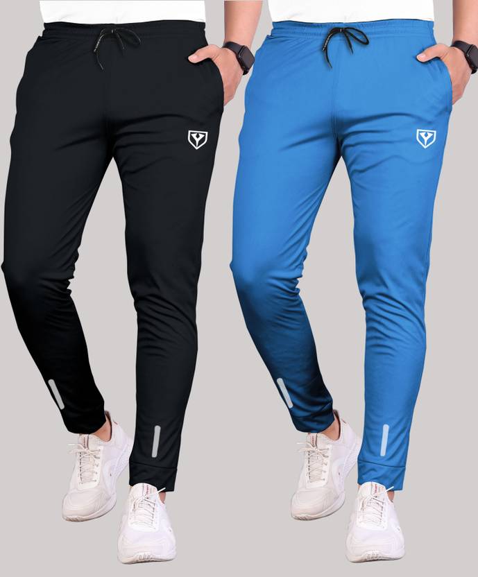 Suzaro Pack of 2 Men Solid Black, Blue Track Pants
