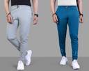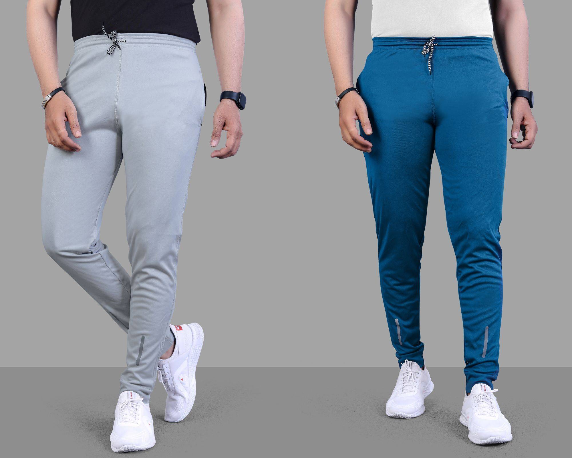 SuzaroΒ Pack of 2 Men Solid Grey, Blue Track Pants