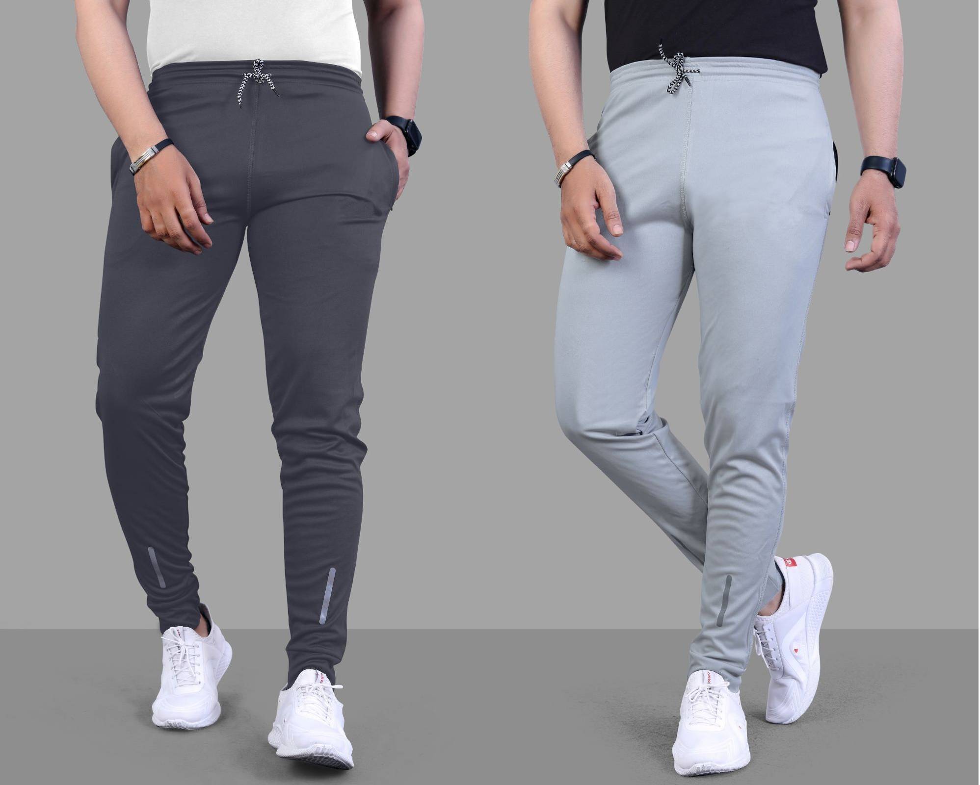 SuzaroΒ Pack of 2 Men Solid Grey, Grey Track Pants