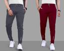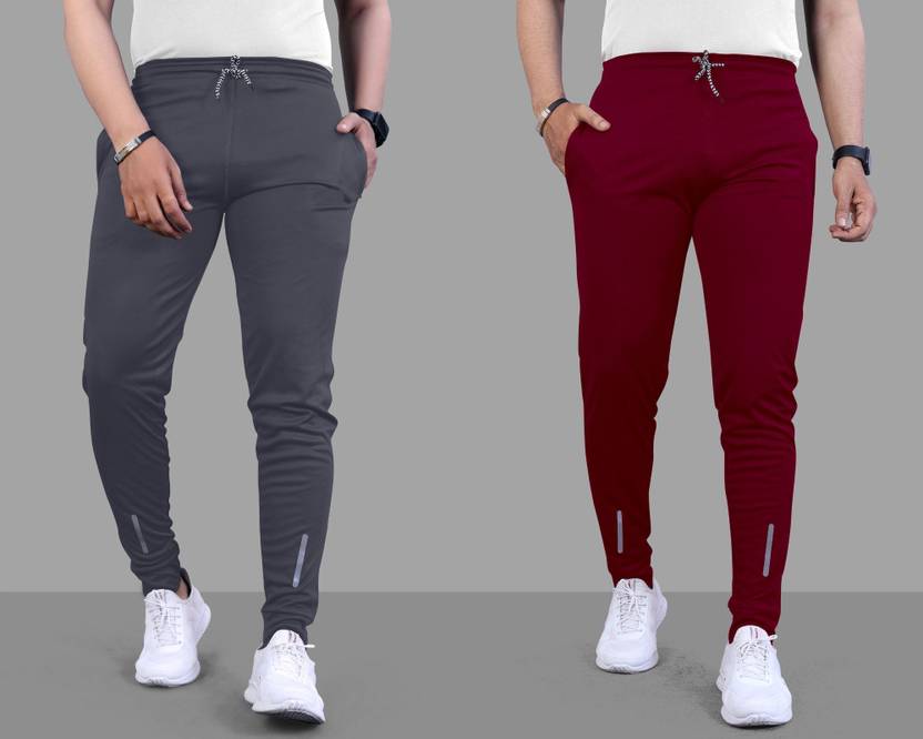 SuzaroΒ Pack of 2 Men Solid Grey, Maroon Track Pants
