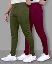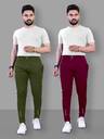 Z-DEVIL Pack of 2 Men Self Design Maroon, Olive Track Pants