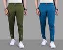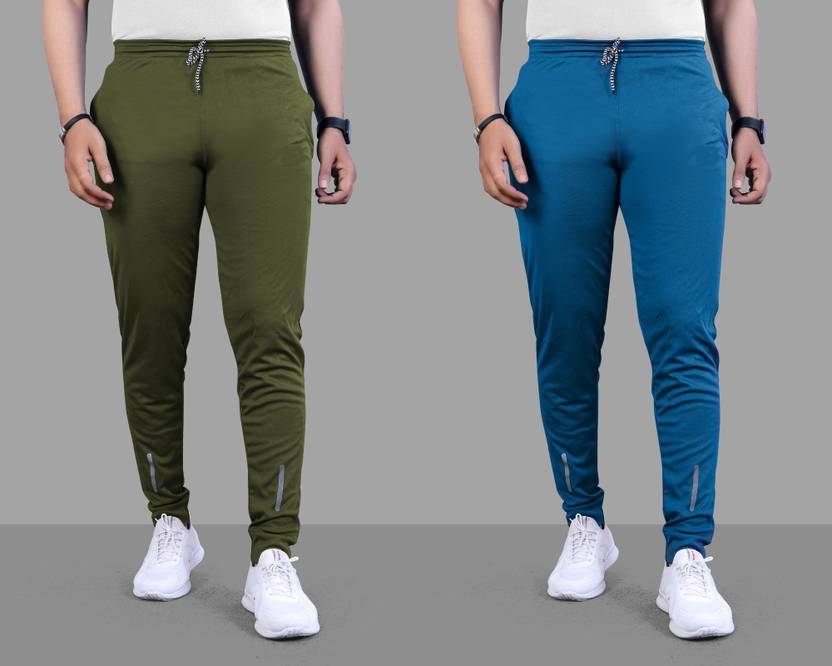 SuzaroΒ Pack of 2 Men Solid Olive, Blue Track Pants