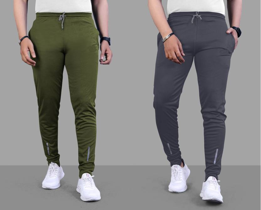 SuzaroΒ Pack of 2 Men Solid Olive, Grey Track Pants