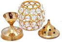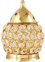 SV Traders Large Akhand Diya Decorative Brass Crystal Oil Lamp Tea Light Holder Lantern Oval Shape Brass, Glass Table Diya (Height: 7 inch)