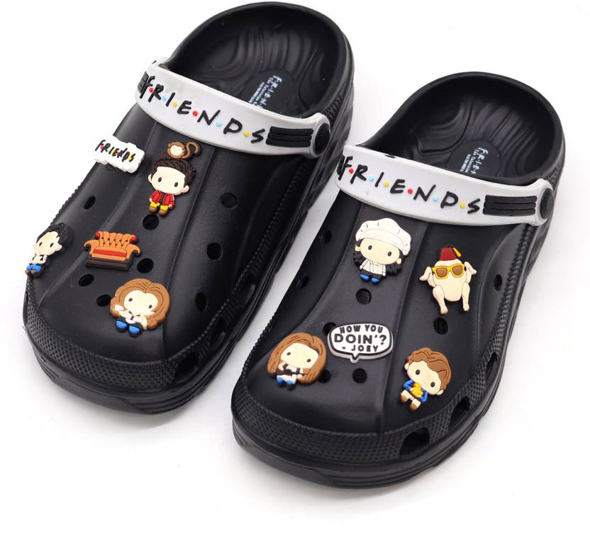 Dive into the nostalgia of your favorite TV show with our Svaar Friends ComfortStride clogs. These sturdy, lightweight chunky-style clogs feature official Friends charms, bringing a touch of Central Perk charm to your every step. Designed with an adjustable back strap for a secure fit and soft cushioning inside, these clogs ensure you stay comfortable on all your hangouts and adventures.
