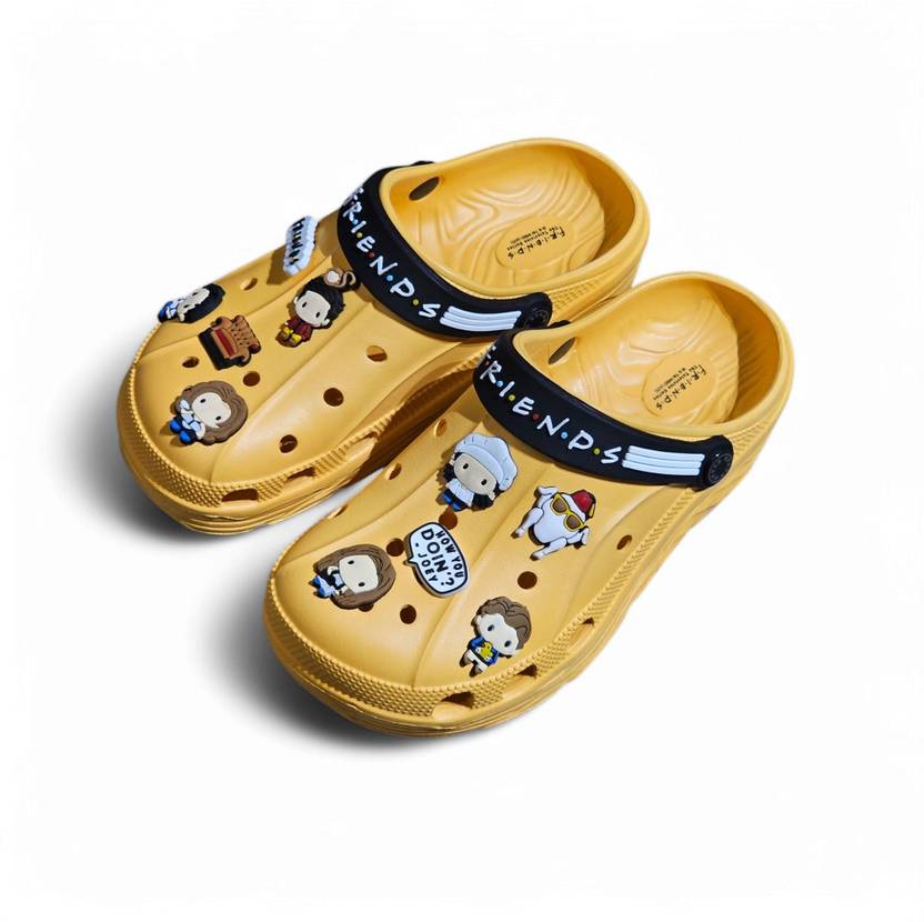 Dive into the nostalgia of your favorite TV show with our Svaar Friends ComfortStride clogs. These sturdy, lightweight chunky-style clogs feature official Friends charms, bringing a touch of Central Perk charm to your every step. Designed with an adjustable back strap for a secure fit and soft cushioning inside, these clogs ensure you stay comfortable on all your hangouts and adventures.