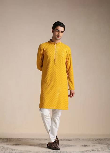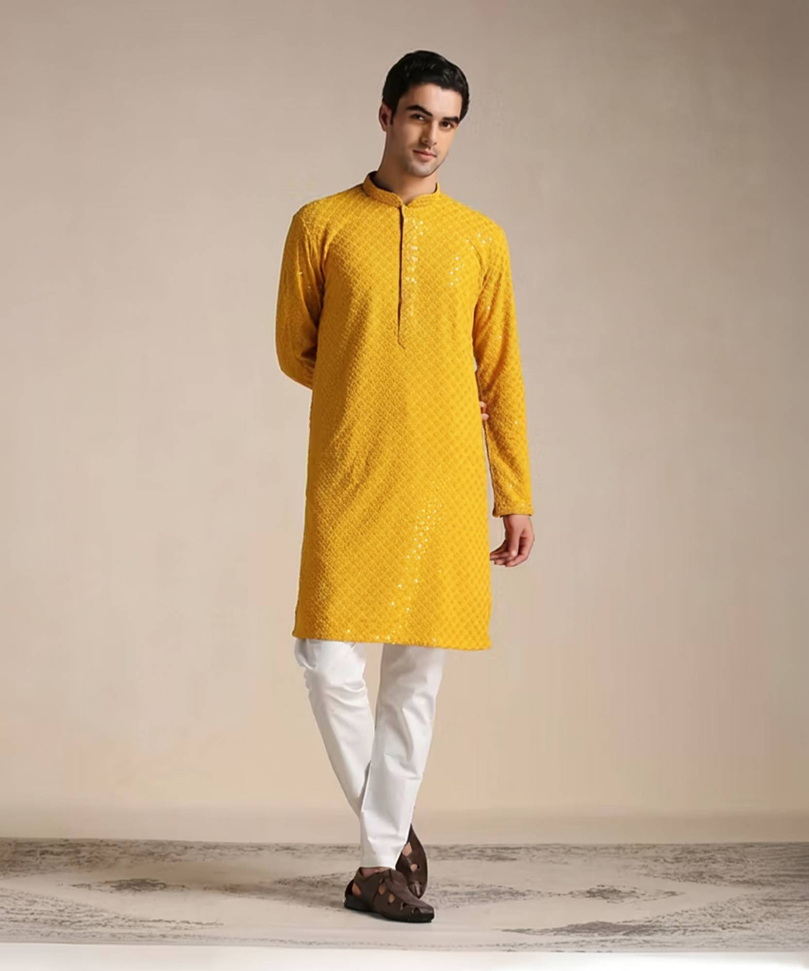 Lucknowi Men's Kurta with white premium pyjama Set for all occassions in different colours like Black Maroon Ramablue navyblue maroon yellow