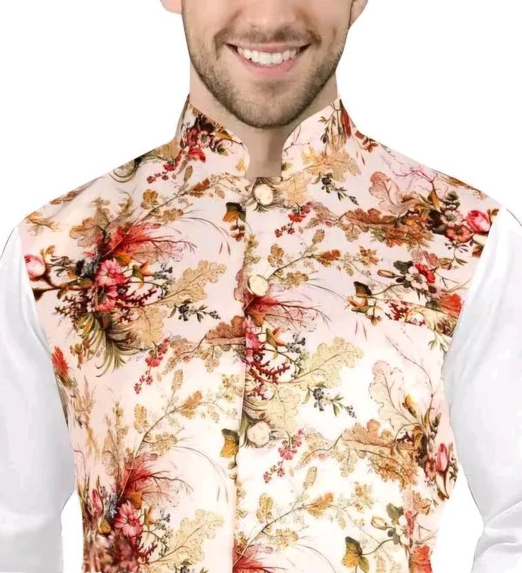 Svatantra Sleeveless Floral Print Men Jacket