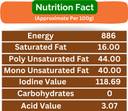 Energy 886, Saturated Fat 16.00, Poly Unsaturated Fat 44.00, Mono Unsaturated Fat 40.00, Carbohydrates 0, Iodine value 118.69, Acid value 3.07