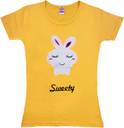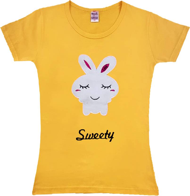 Girls Graphic Print Pure Cotton Regular T Shirt (Yellow, Pack of 1)