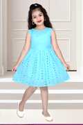 SVM FASHION Girls Midi/Knee Length Casual Dress (Blue, Short Sleeve)