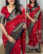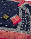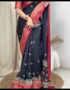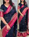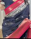 SVPrints Woven, Floral Print Bollywood Muslin Saree (Dark Blue, Pink)