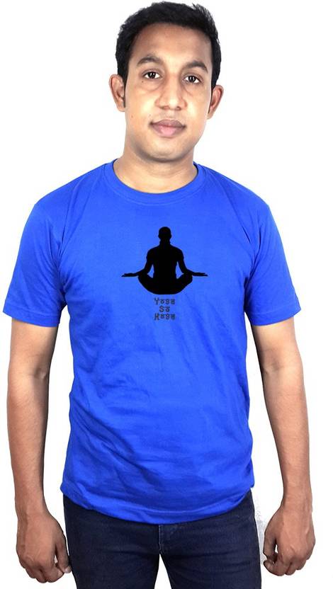 Men Printed Round Neck Cotton Blend Blue T-Shirt