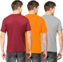 Swag Swami Pack of 3 Men Solid Round Neck Cotton Blend Red, Orange, Grey T-Shirt