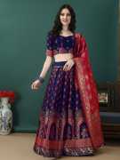 Our designer designed special collection Lehenga choli for Indian girls to wear in party and this festive season. This is perfect gift to your some one specials for this occasional season. Lehenga Fabric Jacquard Lehenga Self Designed pattern. Choli Fabric Jacquard. with this fabric Lehenga looks so elegant. with Banarasi Dupatta. This Lehenga choli Has different Colors so your favourite and get attraction in every events. Colour is slight different due to your visual setting of monitor and mobile screen. Style Tip: For an elegant look, Long this Lehenga Choli, with statement earrings & high heels.