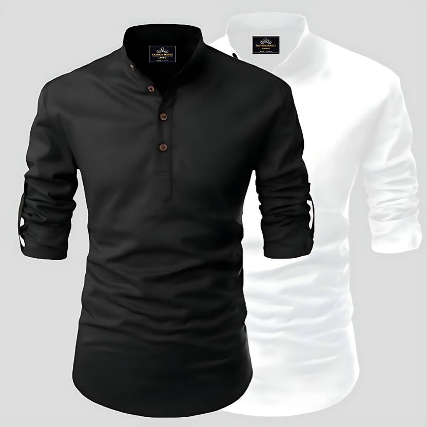 KASHIBAA Pack of 2 Men Solid Cotton Blend Straight Kurta  (Multicolor)