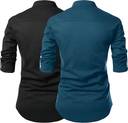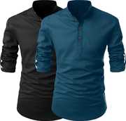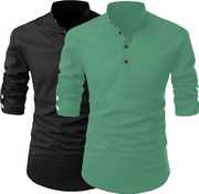 Men Solid Cotton Blend Straight Kurta ( BLACK & PATROL GREEN )