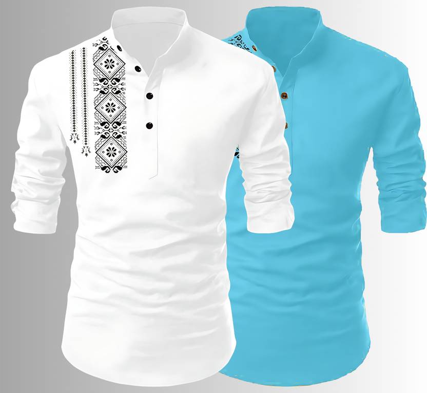 SWAMOTIFASHION Men Solid Straight Kurta (White, Blue)