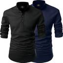 Men Solid Cotton Blend Straight Kurta ( BLACK & NAVY BLUE )