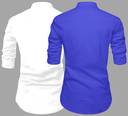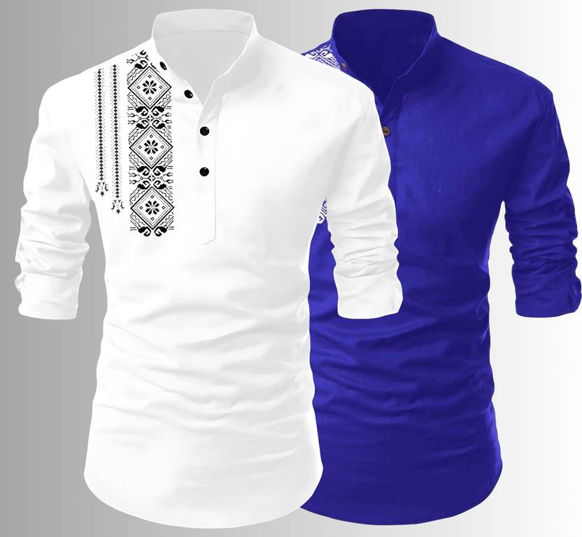 SWAMOTIFASHION Men Solid Straight Kurta (White, Dark Blue)