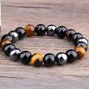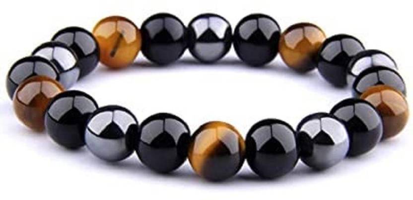 Hematite Semi Precious Stones Crystal Elastic Stretchable Bracelet - Triple Protection Bracelet To Bring Luck and Prosperity for Men and Women