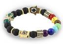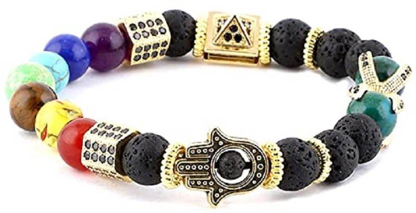 Multicolor Black Lava Yantra 7 Chakra Crystal Stone Bracelet With Hansa Pyramid Hexagons Claw Charms